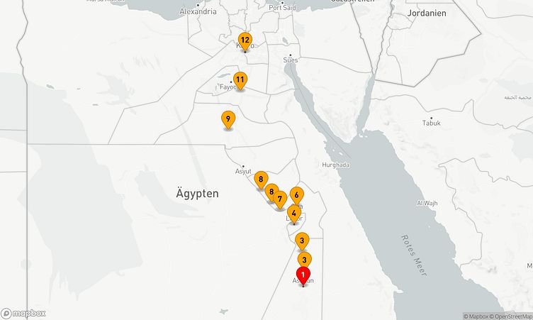 Ihre Reise beginnt in Assuan (Ägypten) am 16. März 2026 und führt nach 14 Tagen zum Zielhafen Kairo / Adabya (Ägypten), wo Ihre Reise endet.