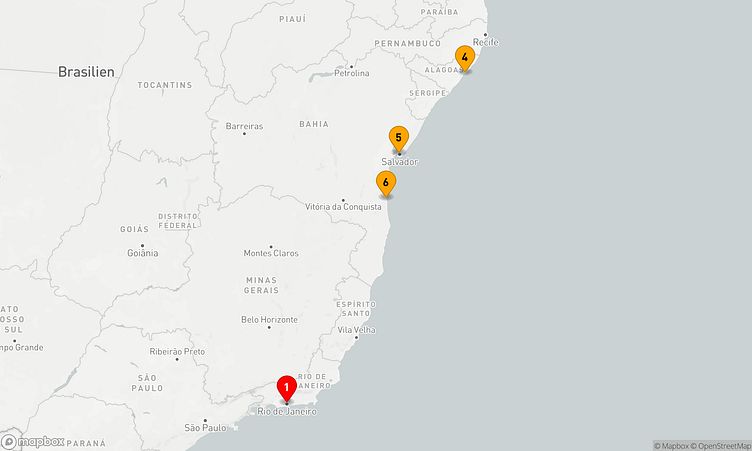 Auf Ihrer Reise besuchen Sie unter anderem die Häfen von Rio de Janeiro, Maceió und Ilhéus, wo spannende Eindrücke von Land und Kultur auf Sie warten.