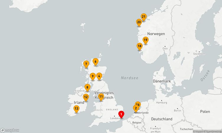Auf Ihrer Route besuchen Sie unter anderem die Häfen von Dover, Invergordon und Liverpool, um das besondere Flair und die einzigartigen Sehenswürdigkeiten der Regionen zu erleben.