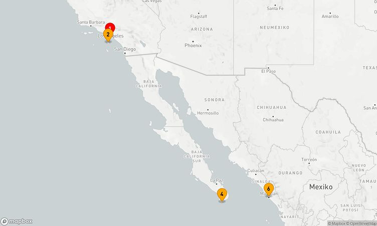 Auf dieser Reise erwarten Sie Stopps in den Häfen von -, Santa Catalina Island und Cabo San Lucas, wo Sie lokale Highlights und unvergessliche Eindrücke sammeln.
