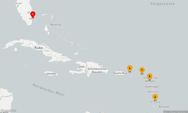 Auf Ihrer Route besuchen Sie unter anderem die Häfen von Fort Lauderdale, Saint Thomas und Castries, die Ihnen faszinierende Eindrücke und einzigartige Entdeckungen ermöglichen.