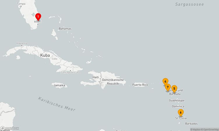 Auf dieser Tour erwarten Sie Stopps in den Häfen von Fort Lauderdale, Philipsburg und Castries, wo Sie lokale Highlights entdecken und unvergessliche Eindrücke gewinnen können.