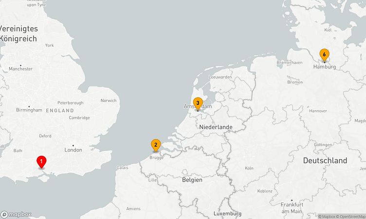 Die Route führt Sie zu den faszinierenden Häfen von Southampton, Zeebrügge und Amsterdam, die mit ihren Sehenswürdigkeiten und lebendigen Eindrücken begeistern.