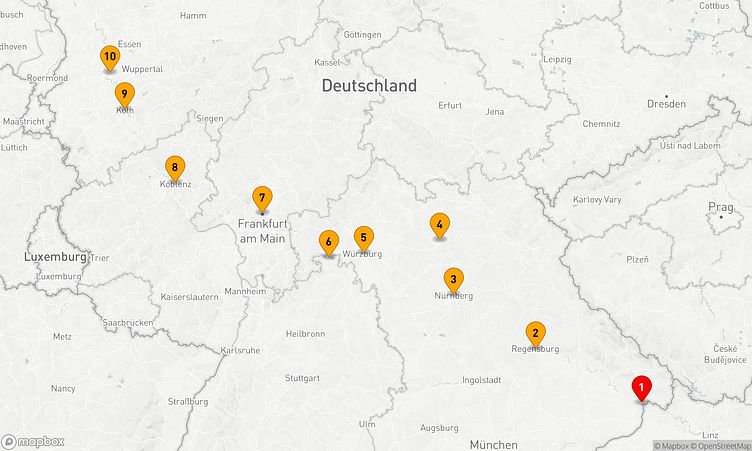 Am 23. April 2026 beginnt Ihre Reise in Passau (Deutschland), und nach 9 Tagen erreichen Sie am 02. Mai 2026 den Hafen von Düsseldorf (Deutschland).