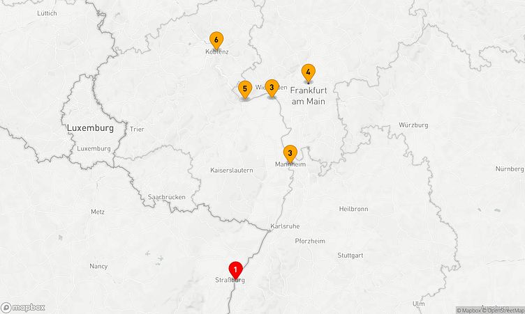Auf Ihrer Reise besuchen Sie unter anderem die Häfen von Straßburg, Mannheim und Frankfurt am Main, die Ihnen faszinierende Eindrücke und einzigartige Entdeckungen ermöglichen.