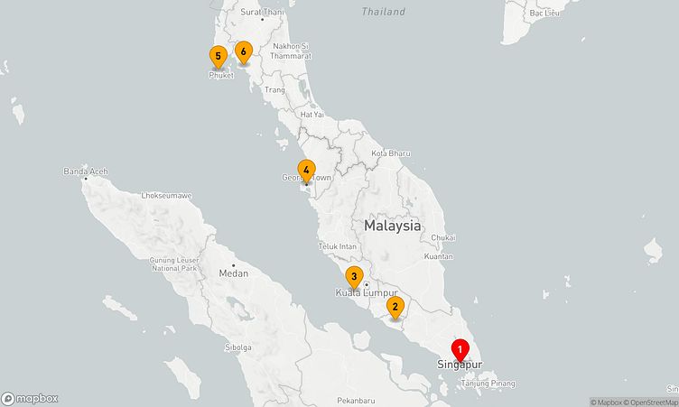 Ihre Route führt Sie zu den beeindruckenden Häfen von Singapur, Malakka und Georgetown – Penang, wo Sie die lokale Atmosphäre und das lebendige Leben vor Ort hautnah erleben können.