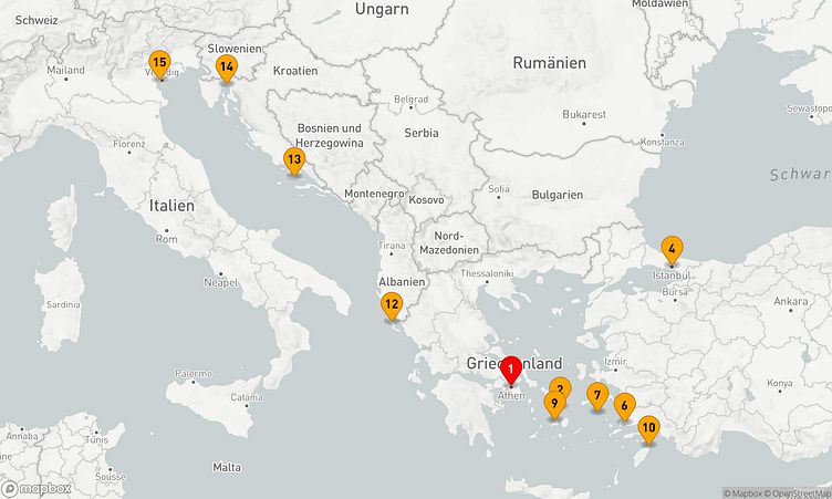 Während der Route legen Sie unter anderem in den Häfen von Athen (Piräus), Istanbul und Paros an, um das Flair und die Besonderheiten der jeweiligen Umgebung zu erleben.