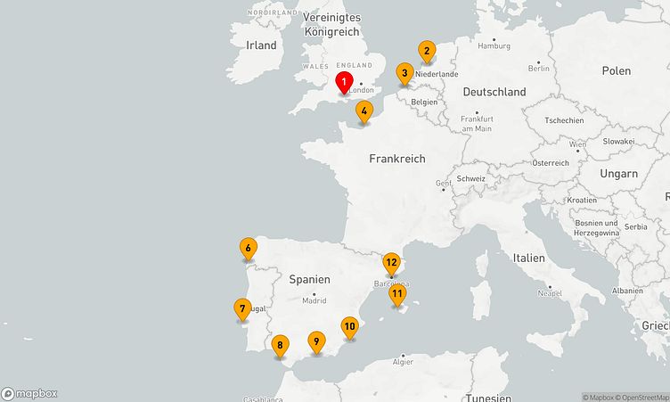 Während der Reise besuchen Sie unter anderem die Häfen von Southampton, Zeebrügge und Lissabon, die Ihnen spannende Eindrücke und einzigartige Entdeckungen bieten.
