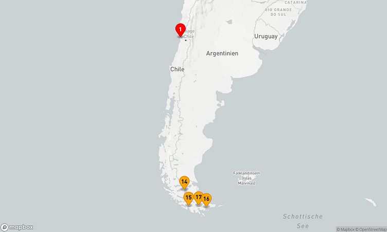 Ihre Reise startet in Valparaíso (Chile). Am 27. November 2026 legen Sie ab und erreichen nach 16 Tagen, am 13. Dezember 2026, den Zielhafen Ushuaia (Argentinien).