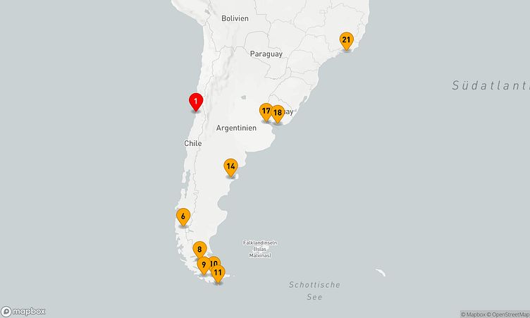 Während der Route legen Sie in Häfen wie Valparaíso, Brüggen Glacier und Ushuaia an, um das besondere Flair und die Einzigartigkeit dieser Orte zu entdecken.