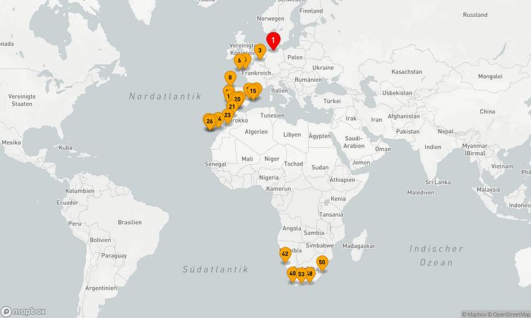 Start ist am 10. Oktober 2027 in Hamburg (Deutschland). Über eine Dauer von 54 Tagen führt Sie die Route bis zu Ihrem Zielhafen Kapstadt (Südafrika), wo Sie am 03. Dezember 2027 ankommen.