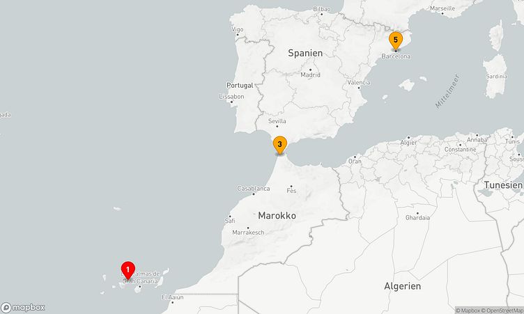 Diese Kreuzfahrt führt Sie zu den faszinierenden Häfen von Santa Cruz de Tenerife, Tanger und Barcelona, die mit einzigartigen Sehenswürdigkeiten und lebendigen Eindrücken auf Sie warten.