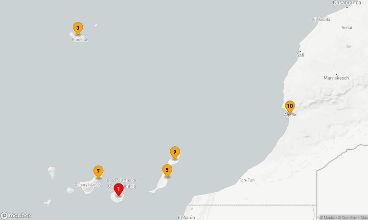 Während dieser Reise erwarten Sie Stopps in den Häfen von Gran Canaria, Funchal - Madeira und Santa Cruz de Tenerife, wo Sie lokale Sehenswürdigkeiten und unvergessliche Eindrücke sammeln können.
