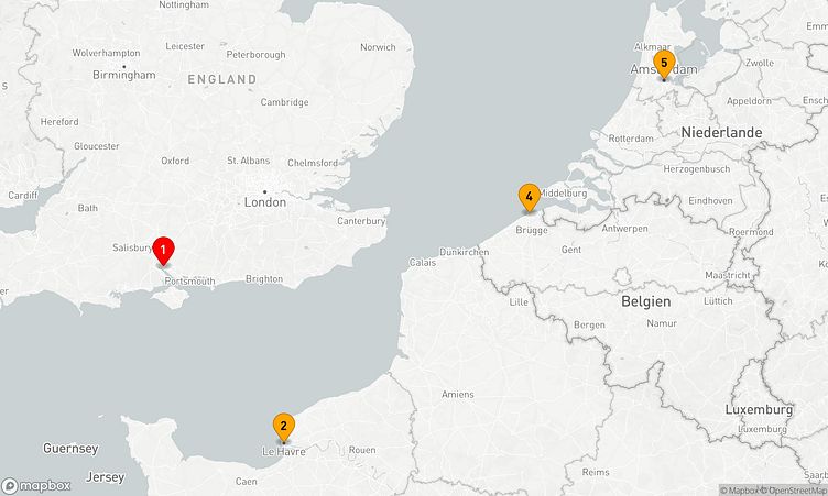 Während der Reise besuchen Sie unter anderem die Häfen von Southampton, Le Havre (Paris) und Amsterdam, die Ihnen spannende Eindrücke und einzigartige Entdeckungen bieten.