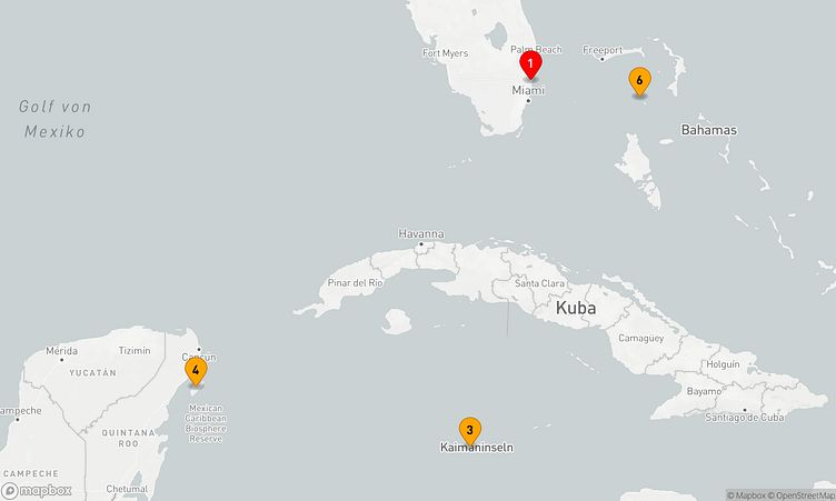 Diese Kreuzfahrt führt Sie zu den beeindruckenden Häfen von Fort Lauderdale, George Town und Cozumel, die mit einzigartigen Sehenswürdigkeiten und lebendigen Erlebnissen auf Sie warten.