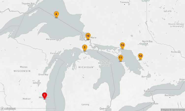 Auf Ihrer Reise besuchen Sie unter anderem die Häfen von Milwaukee, - und Oberer See, wo spannende Eindrücke von Land und Kultur auf Sie warten.