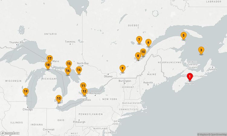 Ihre Reise startet in Halifax (Kanada). Am 19. September 2026 legen Sie ab und erreichen nach 18 Tagen, am 07. Oktober 2026, den Zielhafen Milwaukee (Vereinigte Staaten).