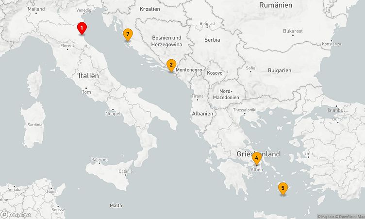 Während der Route halten Sie unter anderem in den Häfen von Ravenna, Dubrovnik und Santorin, um in das Flair und die Besonderheiten der Umgebung einzutauchen.