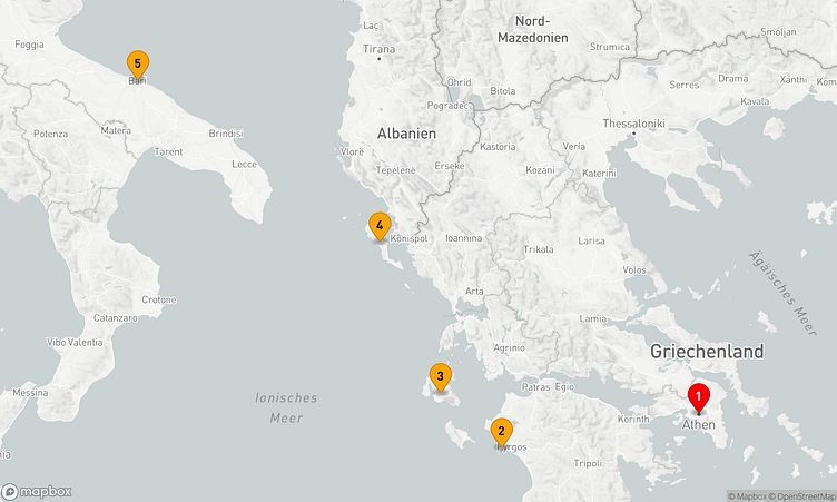 Im Rahmen der Fahrt besuchen Sie unter anderem die Häfen von Athen (Piräus), Katakolon und Korfu, die spannende Einblicke und außergewöhnliche Entdeckungen ermöglichen.
