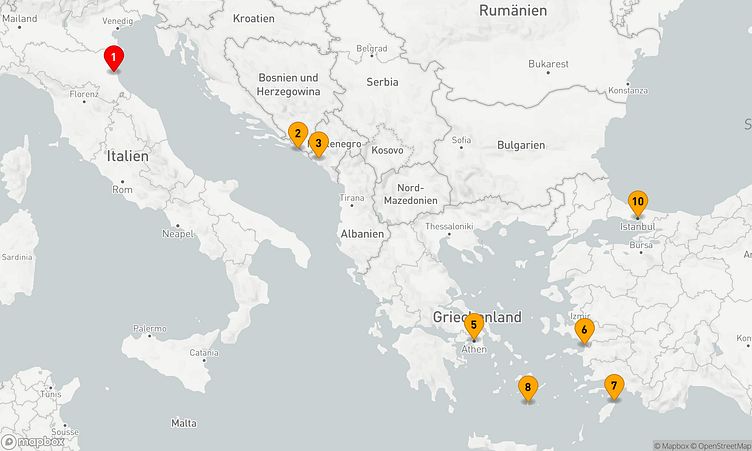 Ihre Reise beginnt am 03. Juli 2026 in Ravenna (Italien) und endet nach 10 Tagen am 13. Juli 2026 in Istanbul (Türkei).