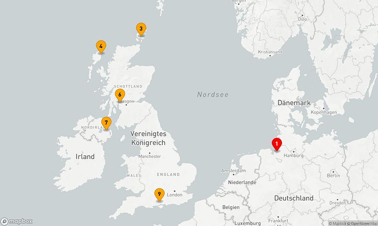Auf Ihrer Route legen Sie unter anderem in den Häfen von Bremerhaven, Kirkwall und Glasgow (Greenock) an, um die Atmosphäre und Besonderheiten der jeweiligen Orte zu erleben.