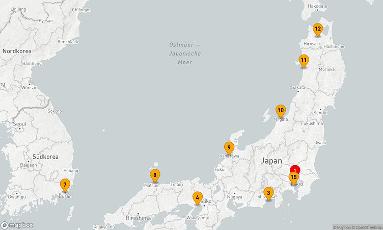 Auf Ihrer Reise besuchen Sie unter anderem die Häfen von Tokyo, Kobe und Kanazawa, wo spannende Eindrücke von Land und Kultur auf Sie warten.
