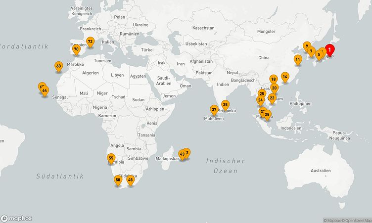 Ihre Reise startet am 28. April 2027 in Tokyo (Yokohama) (Japan) und endet nach 71 Tagen am 08. Juli 2027 im Hafen von Palma de Mallorca (Spanien).