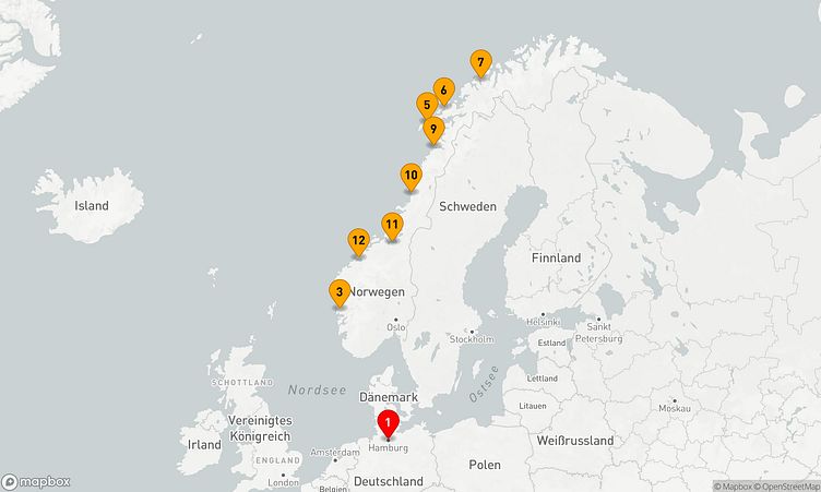 Diese Kreuzfahrt führt Sie zu den faszinierenden Häfen von Hamburg, Leknes und Bodø, die mit einzigartigen Sehenswürdigkeiten und lebendigen Eindrücken auf Sie warten.