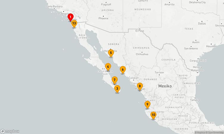 Auf Ihrer Reise besuchen Sie unter anderem die Häfen von San Diego, Loreto und La Paz, wo spannende Eindrücke von Land und Kultur auf Sie warten.