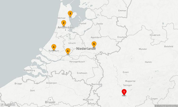 Während der Reise besuchen Sie unter anderem die Häfen von Köln, Zaandam und Hoorn, die Ihnen spannende Eindrücke und einzigartige Entdeckungen bieten.