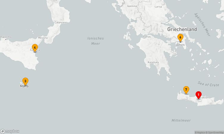 Während der Reise besuchen Sie unter anderem die Häfen von Heraklion, Valletta und Athen (Piräus), die Ihnen spannende Eindrücke und einzigartige Entdeckungen bieten.