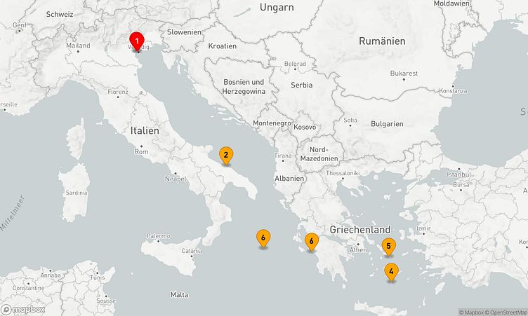 Freuen Sie sich auf Anläufe in Häfen wie Marghera (Venedig), Venice (Fusina) und Santorin, die Ihnen authentische Einblicke und besondere Erlebnisse ermöglichen.