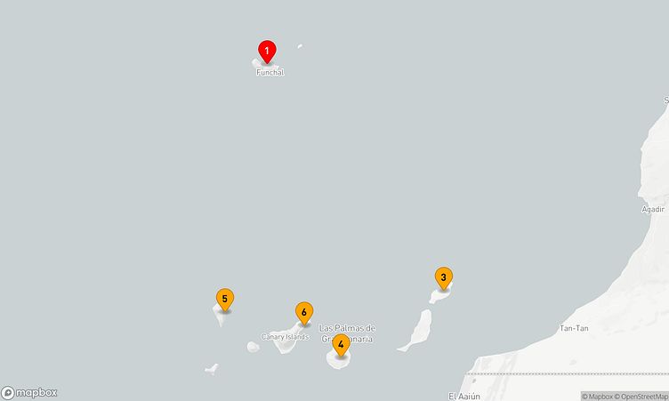 Diese Kreuzfahrt bringt Sie zu den faszinierenden Häfen von Funchal - Madeira, Arrecife / Lanzarote und Santa Cruz de La Palma, die mit einzigartigen Sehenswürdigkeiten und pulsierendem Leben auf Sie warten.