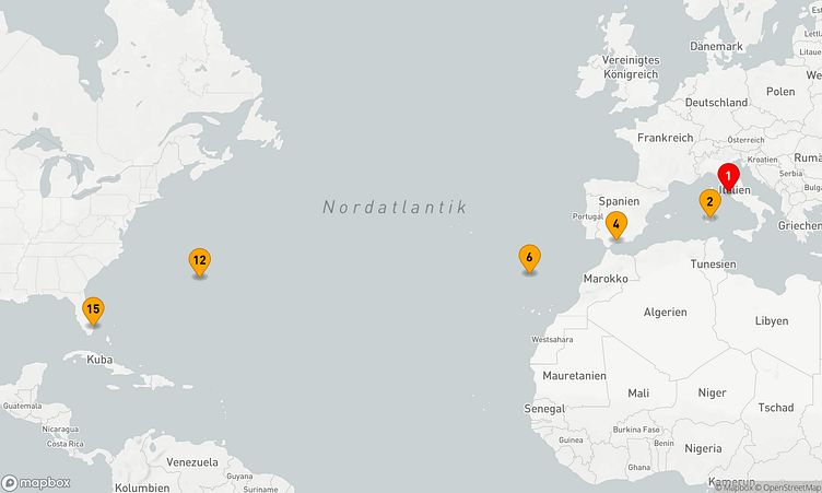 Während der Reise besuchen Sie unter anderem die Häfen von Rom / Civitavecchia, Cagliari und Funchal - Madeira, die Ihnen spannende Eindrücke und einzigartige Entdeckungen bieten.