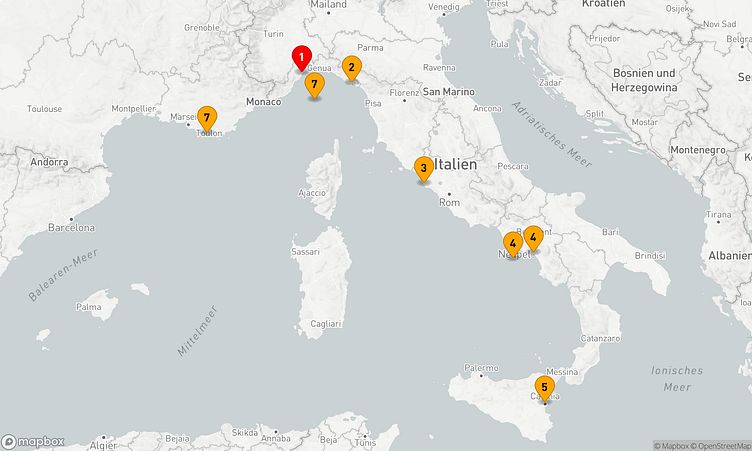 Auf Ihrer Reise besuchen Sie unter anderem die Häfen von Savona, La Spezia und Salerno, die Ihnen spannende Einblicke und außergewöhnliche Entdeckungen ermöglichen.
