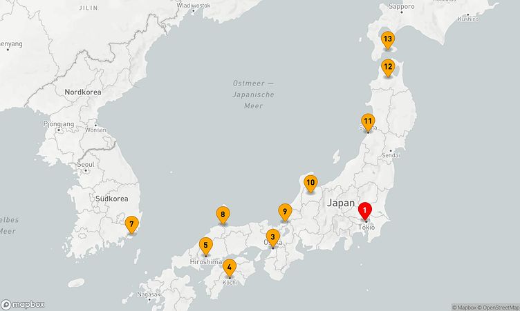 Ihre Route führt Sie unter anderem zu den beeindruckenden Häfen von Tokyo, Kochi und Sakaiminato, wo Sie die lokale Atmosphäre und das lebendige Treiben vor Ort erfahren können.