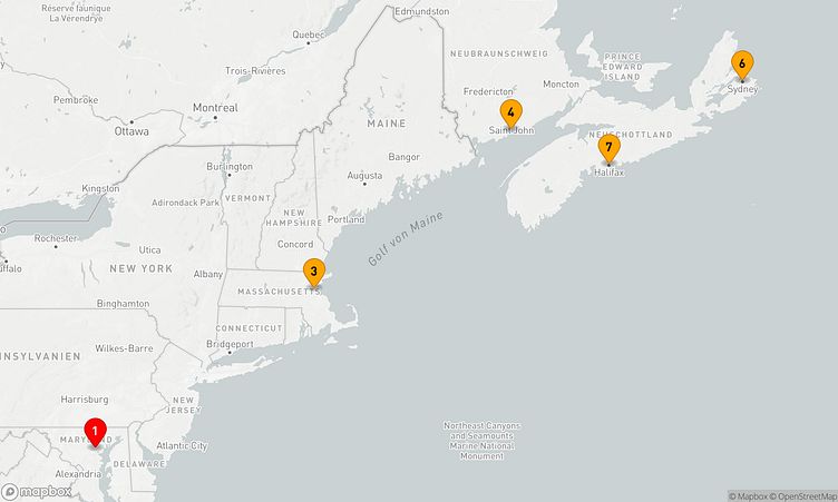 Während der Route halten Sie unter anderem in den Häfen von Baltimore, Boston und Sydney, um in das Flair und die Besonderheiten der Umgebung einzutauchen.