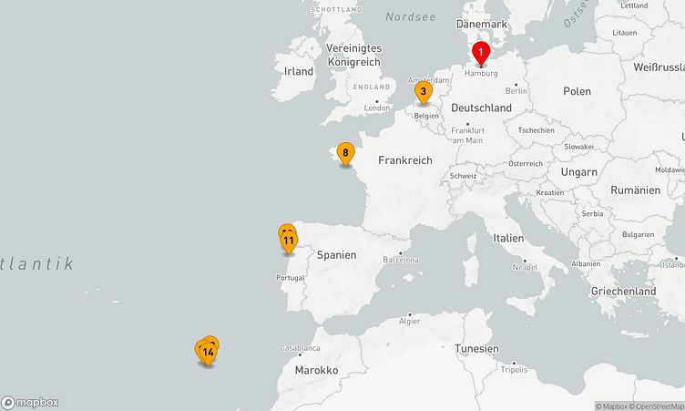 Ihre Route führt Sie unter anderem zu den beeindruckenden Häfen von Hamburg, Le Palais und Porto Santo, wo Sie die lokale Atmosphäre und das Leben vor Ort hautnah erleben können.