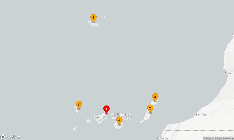 Auf Ihrer Reise besuchen Sie unter anderem die Häfen von Santa Cruz de Tenerife, Fuerteventura und Gran Canaria, wo spannende Eindrücke von Land und Kultur auf Sie warten.