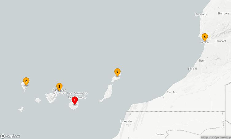 Während der Route besuchen Sie unter anderem die Häfen von Gran Canaria, Santa Cruz de La Palma und Agadir, um das einzigartige Flair und die Besonderheiten jeder Region zu entdecken.