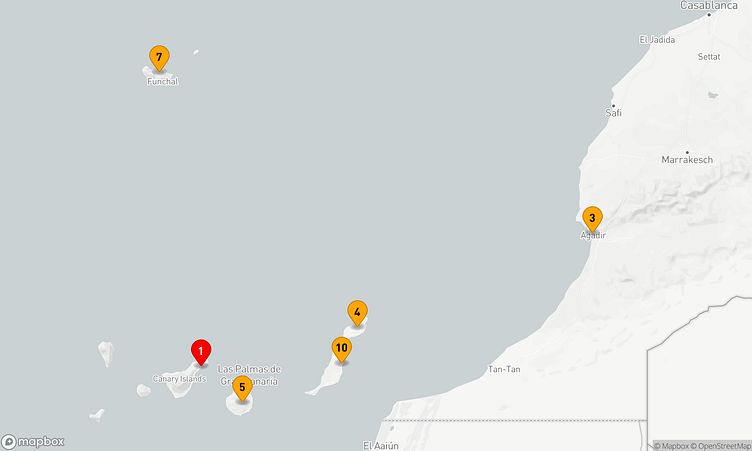 In Häfen wie Santa Cruz de Tenerife, Agadir und Gran Canaria haben Sie die Gelegenheit, die Region auf eine besondere Art zu erkunden und Neues zu entdecken.