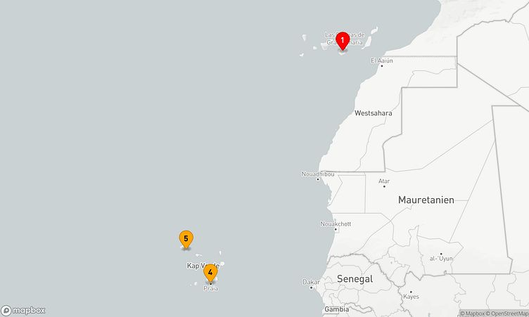 Auf Ihrer Reise besuchen Sie unter anderem die Häfen von Gran Canaria, Praia und Mindelo, wo spannende Eindrücke von Land und Kultur auf Sie warten.