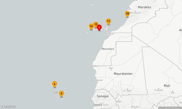 Diese Kreuzfahrt bringt Sie zu den beeindruckenden Häfen von Gran Canaria, Praia und Arrecife / Lanzarote, die mit einzigartigen Sehenswürdigkeiten und lebendigen Eindrücken auf Sie warten.