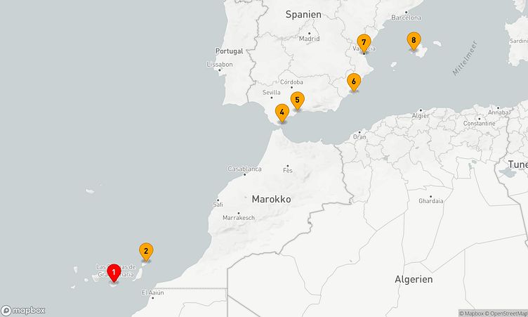 Auf der Route machen Sie Halt in den Häfen von Gran Canaria, Arrecife / Lanzarote und Malaga, um das lokale Flair und die besonderen Highlights der Regionen zu erleben.