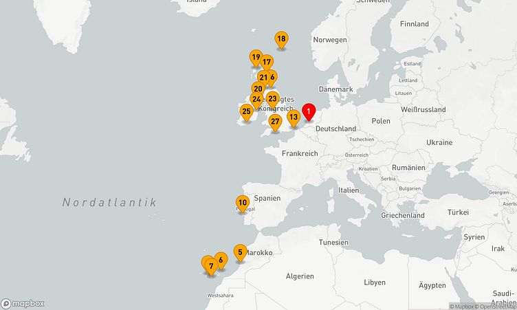 Am 18. April 2026 starten Sie in Rotterdam (Niederlande) und legen nach 28 Tagen am 16. Mai 2026 in Rotterdam (Niederlande) wieder an.