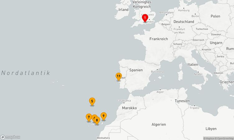 Auf dieser Reise erwarten Sie Stopps in den Häfen von Southampton, Funchal - Madeira und La Palma, wo Sie lokale Highlights und unvergessliche Eindrücke sammeln.