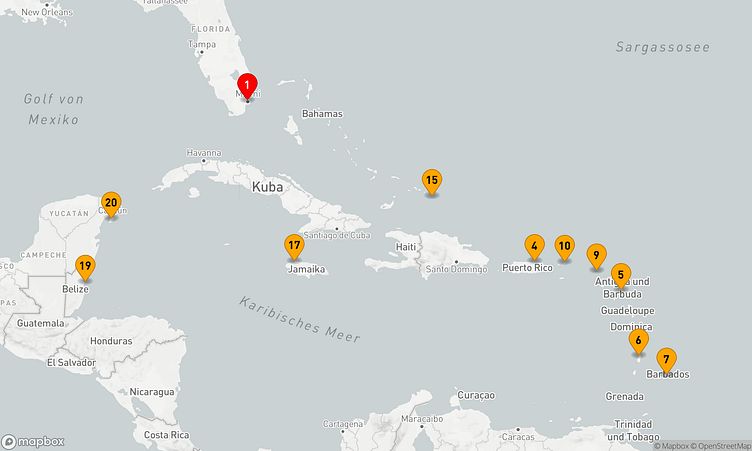 Während dieser Reise legen Sie in den Häfen von Miami, Castries und Road Town an, um lokale Highlights zu entdecken und unvergessliche Eindrücke zu sammeln.