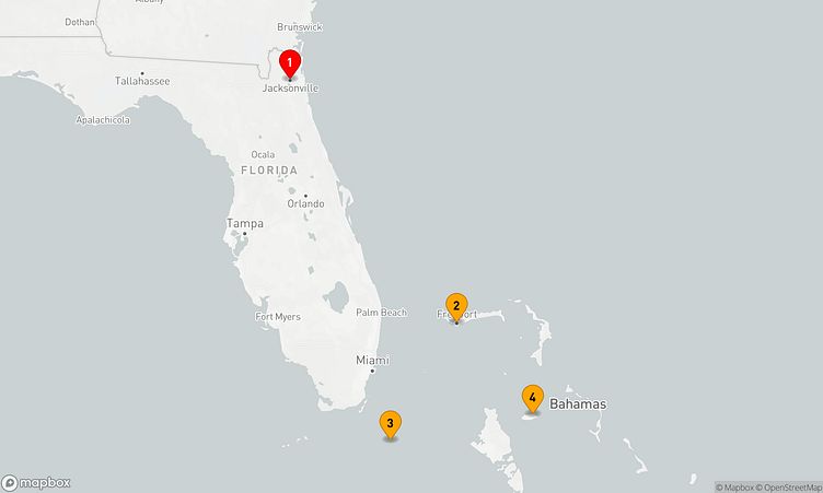 Ihre Route führt Sie zu faszinierenden Häfen wie Jacksonville, Freeport und Bimini, wo Sie die lokale Atmosphäre und das pulsierende Leben vor Ort hautnah erleben können.