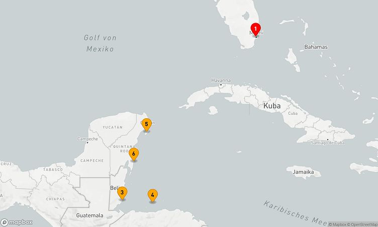 Während der Route halten Sie unter anderem in den Häfen von Miami, Harvest Caye und Cozumel, um in das Flair und die Besonderheiten der Umgebung einzutauchen.
