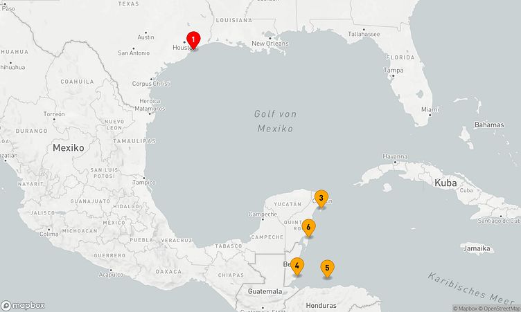 Ihre Route führt Sie zu den beeindruckenden Häfen von Galveston, Cozumel und Roatán, wo Sie die lokale Kultur und Lebensart hautnah erleben können.